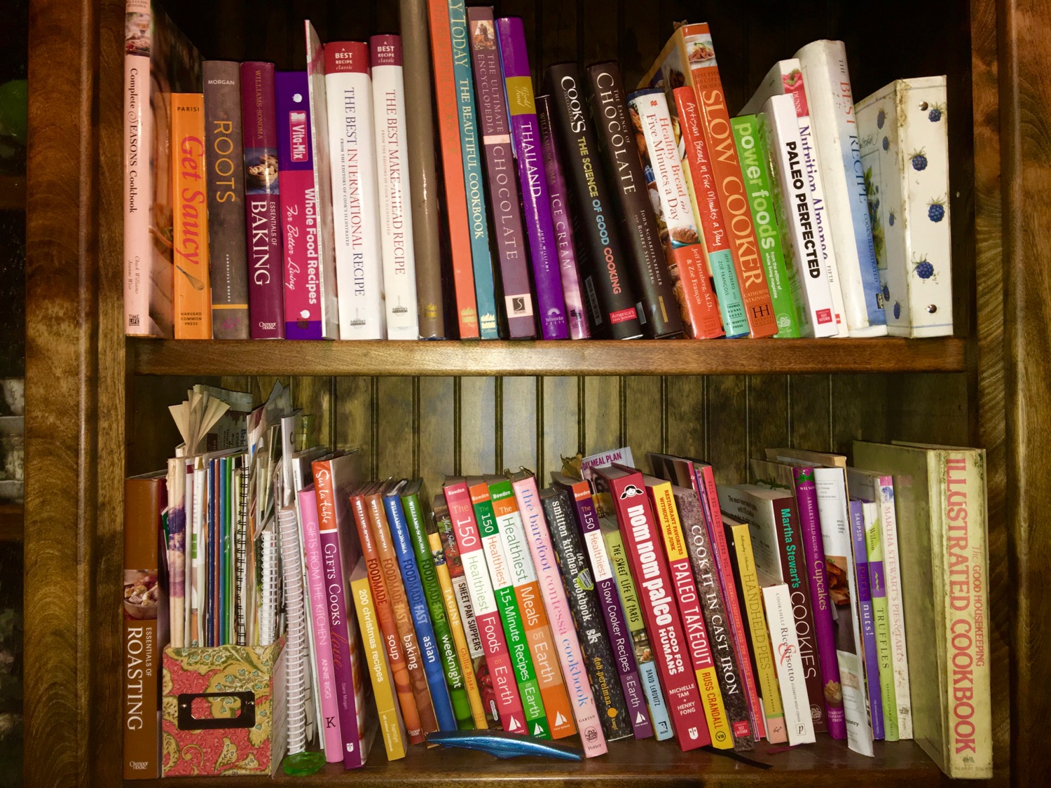 Here are some homegrown photos of my cookbook shelves as they are tonight.